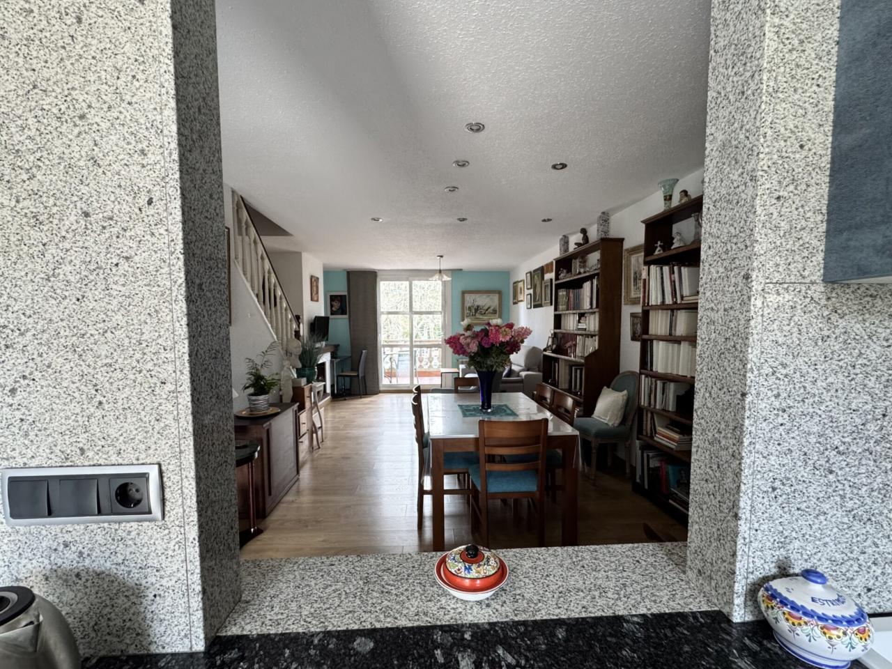 La zona de dia ofereix espais còmodes i lluminosos. El menjador disposa d’una petita sortida exterior que aporta amplitud i molta llum natural a l’estança. A la sala d’estar hi trobem un acollidor foc a terra, que dona calidesa i caràcter a la llar.
