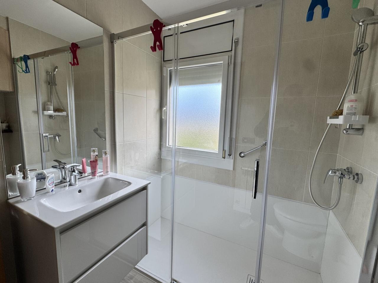 L’habitatge es distribueix en 3 habitacions dobles, una d’elles molt àmplia amb bany complet amb plat de dutxa en suite i una petita terrassa privada. A la planta baixa també hi trobem una habitació tipus despatx, perfecta per teletreballar o com a espai polivalent.