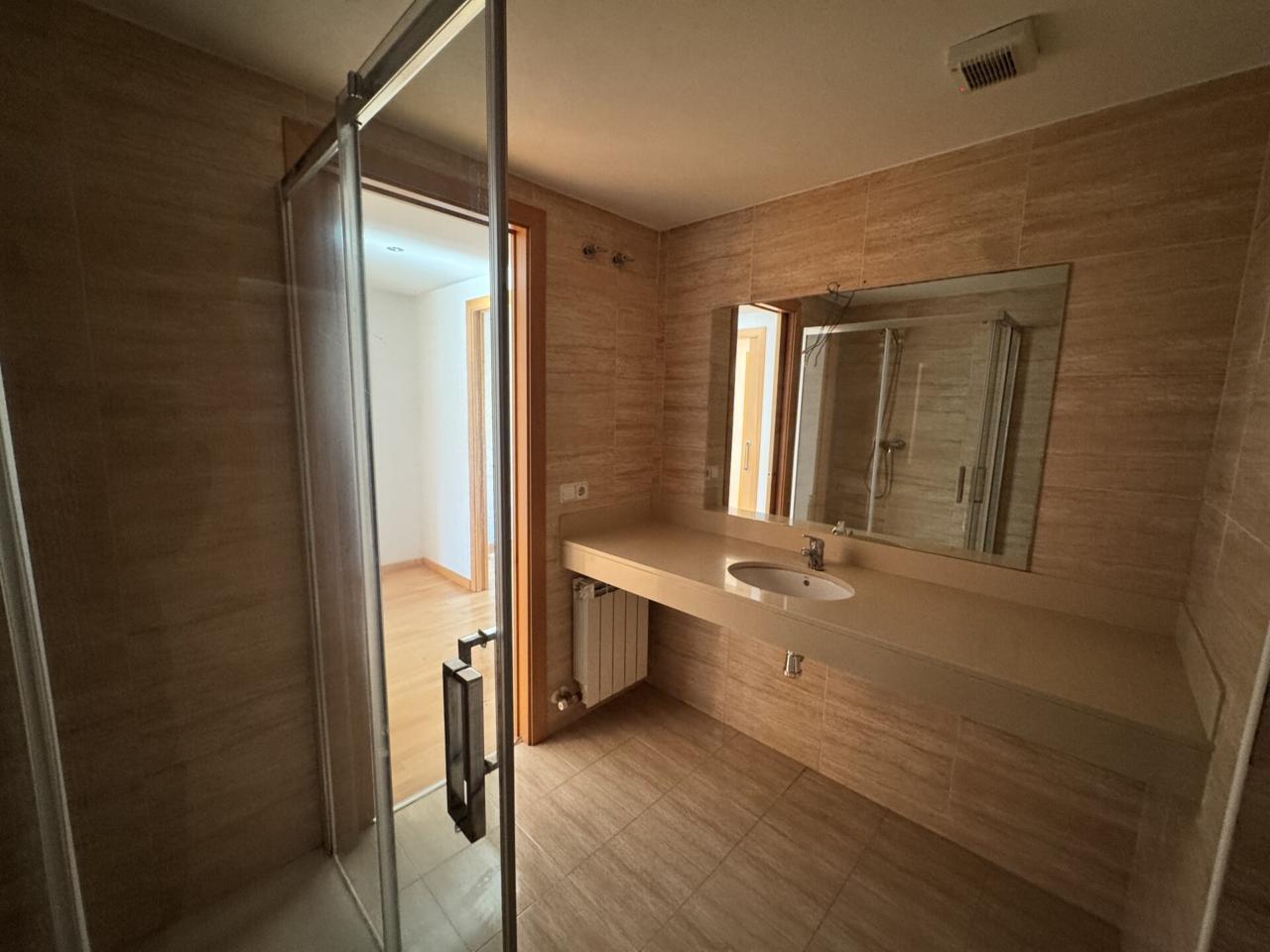 L’habitatge està distribuït en dues plantes. A la planta baixa hi trobem una magnífica zona de dia, molt lluminosa, amb cuina independent i un ampli menjador–sala d’estar amb grans finestrals que aporten una excel·lent entrada de llum natural. La zona de nit queda separada de la zona de dia pel rebedor, que alhora fa de distribuïdor i aporta una clara diferenciació dels espais. Aquesta planta disposa d’una habitació doble amb bany privat. A més, sota l’escala hi ha un pràctic armari amb espai d’emmagatzematge.